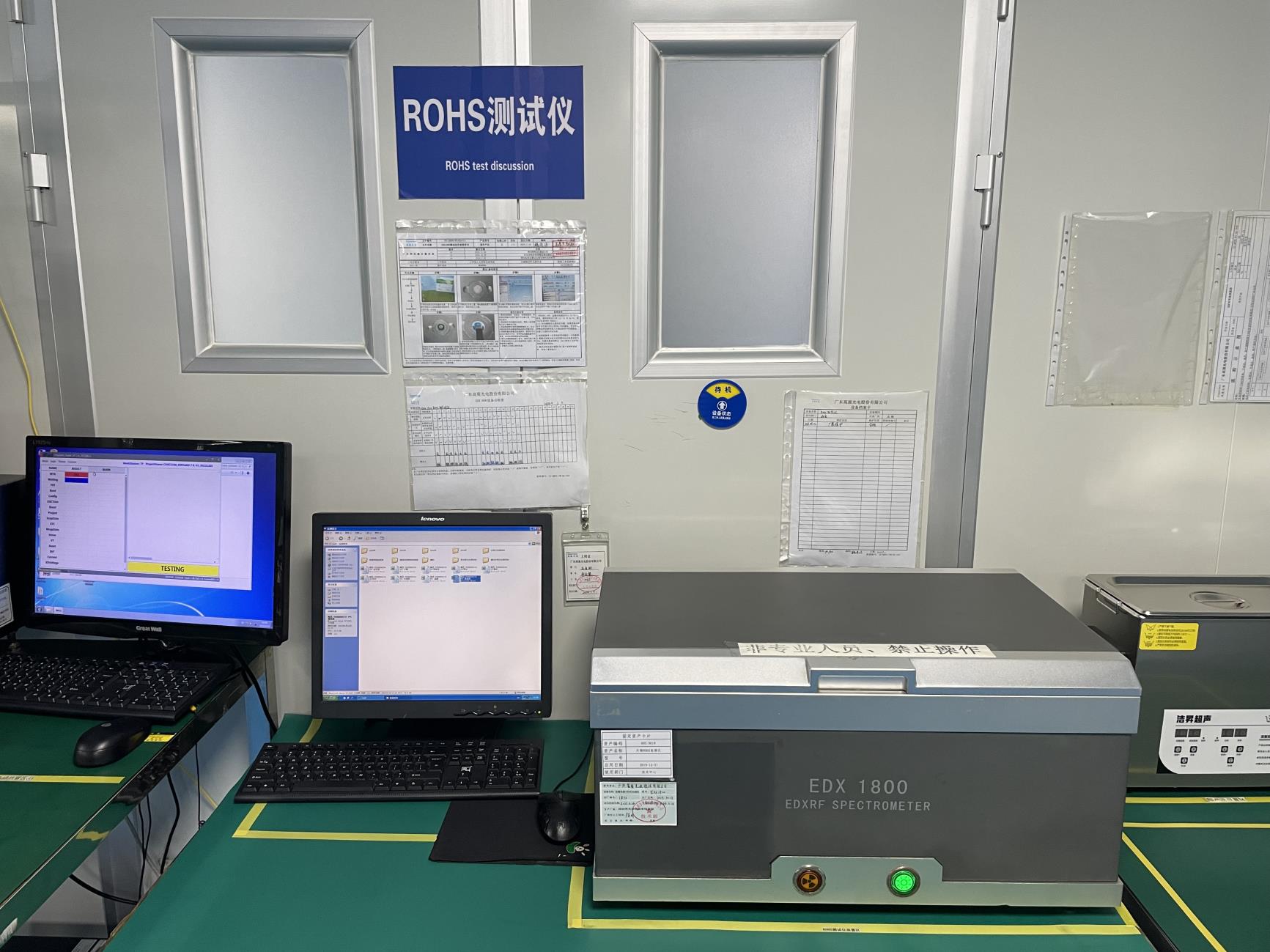 当社は最先端の検査設備を利用して、すべての検査の精度と信頼性を確保しています。当社の高度な設備には、高精度の自動光学検査 (AOI) マシン、機能テスト装置、環境テストチャンバーが含まれます。手動検査の代わりに AOI 技術を使用することで、人的疲労をなくし、人的エラーのリスクを大幅に削減します。AOI テストにより、当社の製品の欠陥率は 300 PPM 未満になり、製品の品質と精度が大幅に向上します。AOI マシンは、スポットの場合は 5μm、異物の場合は 50μm という小さな欠陥を検出できます。また、2% グレー スクリーンのムラ欠陥、±0.0002 の精度の低コントラスト色欠陥、および明暗スポット、線、バックライト異物、ディスプレイ異常、エッジ光漏れ、色温度偏差、ムラ欠陥などのさまざまな欠陥を正確に検出します。