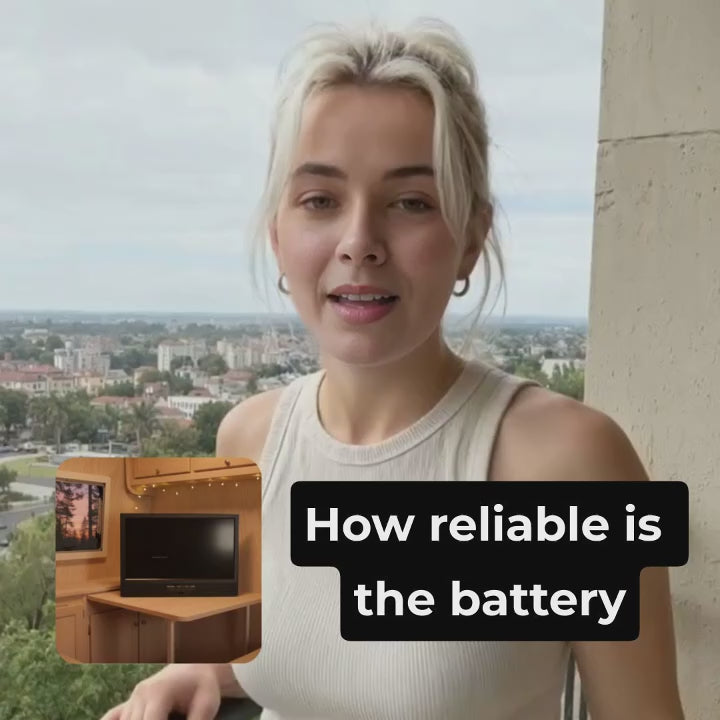 20 Inch Smart Portable TV | Android 14, Solar-Ready & 3.5H Battery for Camping